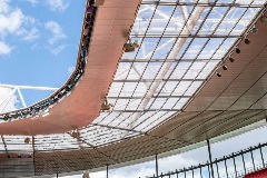 Brett Martin were delighted to continue working with the leading building envelope specialist, TSL on this roof refurbishment project. The material was used due to its exceptional strength, impact resistance, and weathering durability, combined with high optical clarity and light transmission. The rooflights, which cover and illuminate a large section of the stadium, provide 88% transmission of diffused natural light.