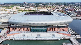 Brett Martin has supplied its Marlon CS polycarbonate corrugated sheeting for the entire interior roof of Everton Football Club’s new stadium on Bramley-Moore Dock in Liverpool. Selected by architect BDP Pattern, the transparent lightweight panels maximize daylight transmission, supporting a healthy pitch and offering cover for spectators.