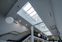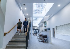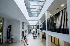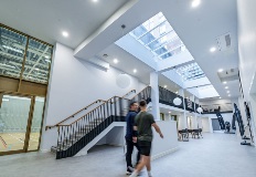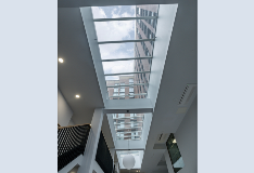 Brett Martin supplied a striking Glass Link rooflight system installed above the central hallway that connects the communal area and recreational facility entrance. This rooflight consists of a continuous run of 20 fixed modules.