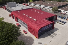 This innovative building envelope incorporates a curved and asymmetrical steel construction and a distinctive red Kalzip aluminium roofing system. As part of the design, a compatible rooflight solution was required that would maximise daylight and reduce energy demands.