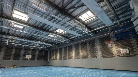 A series of 8 premium Glass Link rooflights then, which met the requirement for high light transmission and thermal performance, were fitted to flood the multi-sports complex with natural daylight. A laminated inner pane also ensures the safety of those below.