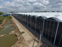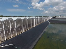Opaque dual-tinted Marlon ST sheet in 16 mm X-wall was used on one side of the greenhouse. This innovative grey/white dual-tinted sheet completely blocks light transmission through the sheet offering growers full control of the greenhouse lighting environment. Opaque walls also provide complete privacy and security.