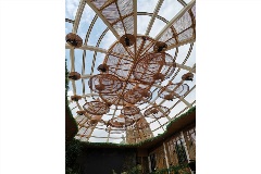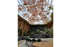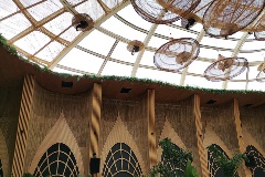 The huge 12.75m high dome floods the area with natural light. Initially, the designers wanted to use glass for the dome. However, they soon realised that glass was too heavy for their design and would be difficult to bend into the individual sections which are mounted into the curved wooden structure.