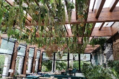 Designed by the architect team from Grosu Art Studio, the pan-Asian restaurant offers spectacular views of Herastrau Lake. The natural woods used in the construction and the plants dotted around the space bring a feeling of nature and the Asian jungle into the restaurant.
