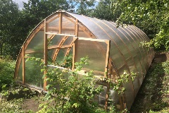The Timbertunnel is long tunnel shaped greenhouse for growing fruit and veg. The frame is made from laminated Scottish grown Douglas Fir which is naturally durable, thus minimising ongoing maintenance. Marlon ST multiwall polycarbonate was the perfect choice for this build, as it allows light transmission through the clear sheet while providing insulation for the plants. It is also impressively durable which means it will last much longer than traditional polytunnel sheeting. The impact resistance of Marlon ST further helps to protect the fruits and vegetables from the effects of harsh Scottish winters.