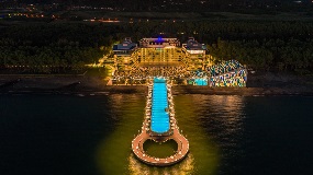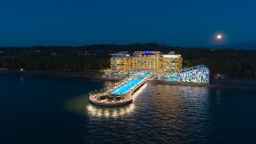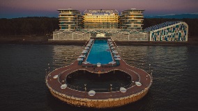 Four different tints of 6mm Twinwall Marlon ST multiwall polycarbonate sheet - clear, bronze, blue & green - were supplied to create this stunning rooflight and vertical façade on the Paragraph Resort & Spa located on the picturesque coast line, beside the Black Sea in Georgia.