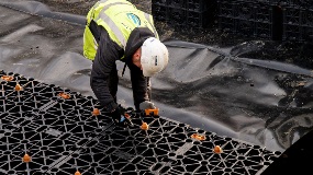 For this project, Brett Martin provided the Horsman team with a pre-fabricated geotextile liner which was pre-cut to fit the size of each tank. The one-piece liners done away with the need to cut and join the liner during the install and speeded up the process of sealing both tanks. The outlet from this tank is controlled through a Hydro-Brake chamber to facilitate a slow release of the stored water back into the drainage system over a longer period.