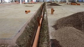 To do this several channels were cut into the concrete floors to lay Brett Martin’s 110mm, 160mm through to 200mm drainage pipes and fittings. The works involved fully testing the drainage layouts to ensure the waste water flowed as required through the pipe networks before backfill was laid.
