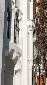 For the west façade on Iffley Road, the architect specified an authentic Porcelain White Cast Iron Style Hopper in the Gothic design to bring period authenticity to the distinctive façade. A 105mm round downpipe in Porcelain White was also installed to match the white painted cement render.